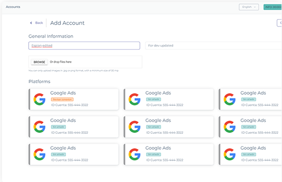 Siempre tienes un presupuesto que tu cliente te asigna para invertir en todas las plataformas online de publicidad; Google Ads, X Ads, LinkedIn, Bing, etc… Con AiBudgets podrá definir el presupuesto global y hacer que este se “balancee” en función a unas sencillas reglas automáticas entre cada una de las plataformas que mas te convenga según tus necesidades. La AI hará el resto por ti como si tu estuvieses 24 horas supervisando todas las plataformas publicitarias online al mismo tiempo.