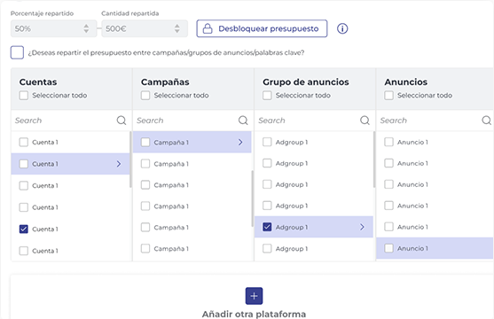 Asigna un presupuesto para todas las plataformas que desees asignando a cada cmapaña una prioridad de inversión, el sistema se encarga cada minuto de analizar cual rinde mejor.